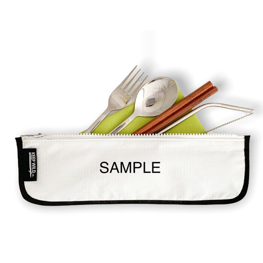 This line of utensil kits is something our Keep Wild team has been working on for a long time. We wanted to provide utensil kits at a more affordable price that take our vision of sustainability even further. Each pouch is made out of recycled surf contest banners that we collected in Hawaii. It gives us great pleasure to not only help reduce the use of single use plastic by allowing people to bring their own utensils, but also makes use of previous waste that would otherwise be left in our land and oceans.